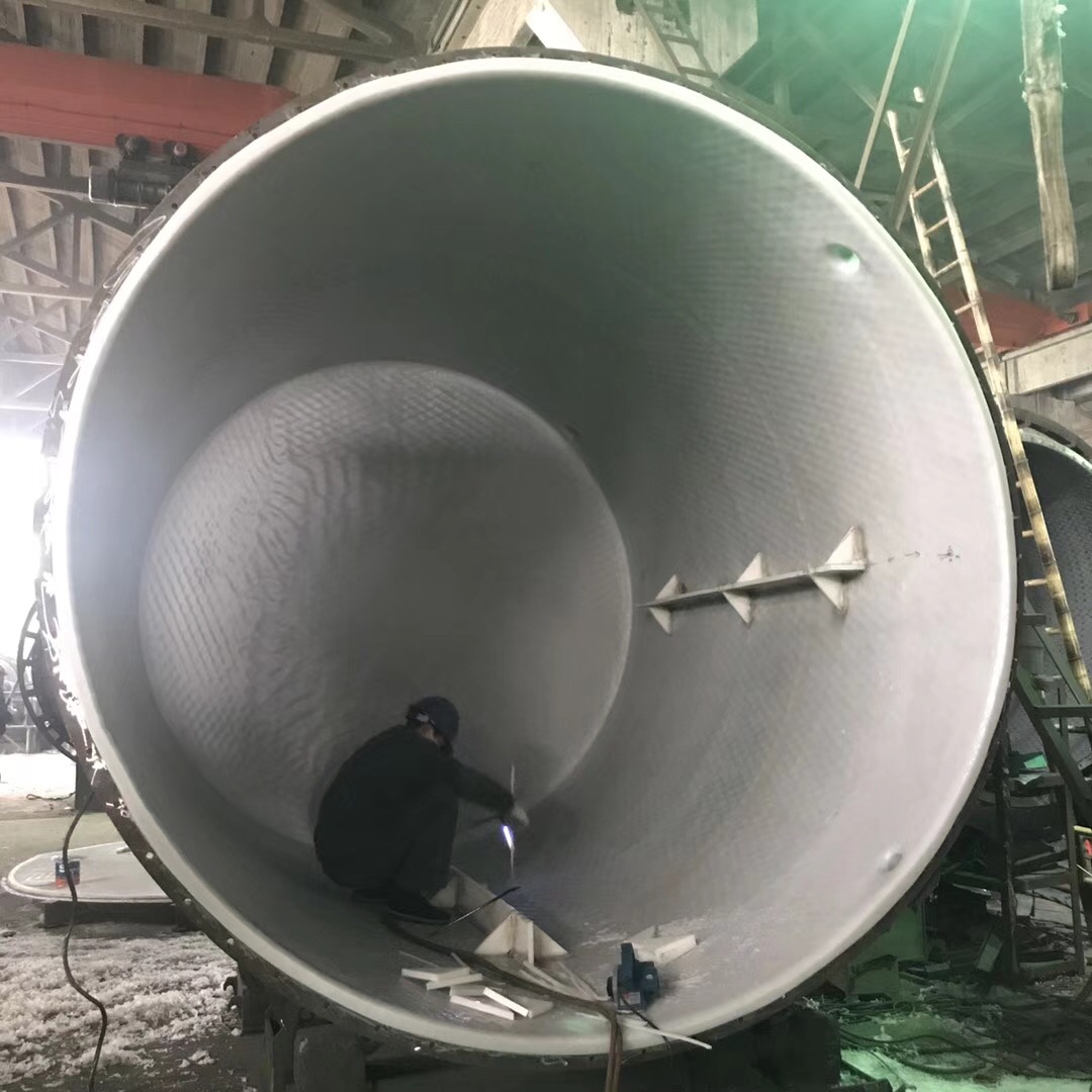 聚四氟乙烯(teflon或ptfe),俗称“塑料王”,是由四氟乙烯经聚合而成的高分子化合物,具有优良的化学稳定性、耐腐蚀性、密封性、高润滑不粘性、电绝缘性和良好的抗老化耐力。用作工程塑料,可制成聚四氟乙烯管、棒、带、板、薄膜等。一般应用于性能要求较高的耐腐蚀的管道或罐体等。大型罐体内衬聚四氟乙烯板材后,具有优良的化学稳定性、耐腐蚀性、密封性、高润滑不粘性、电绝缘性和良好的抗老化耐力。采用聚四氟乙烯板材作为罐体或者管体内衬,通常是在罐体或者管体内壁上洒聚四氟乙烯粉,对罐体或罐体外部加热,高温成型。这种成型方式,工艺复杂,温度难以控制精准,成型后外表面有瑕疵难以消除。